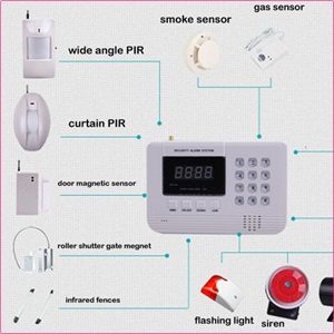 ALARM HOME SECURITY Ini mengadopsi dual network technology yaitu GSM dan PSTN dan dapat digunakan untuk personal maupun penggunaan komersil seperti perkantoran, toko, gudang, dll. ALARM HOME SECURITY ini di lengkapi dengan Intelligent Alarm System dan technology GSM Digital Signal Process, GSM Wireless Mobile dan PSTN Landline Network (Telkom). Produk ini telah terintegrasi dengan digital voice, SMS, self-learning wireless communication code, remote appliance control dan technology short message. Unit GSM Alarm mensupport pesan suara otomatis dan pesan text otomatis saat sensor mendeteksi pelanggaran.